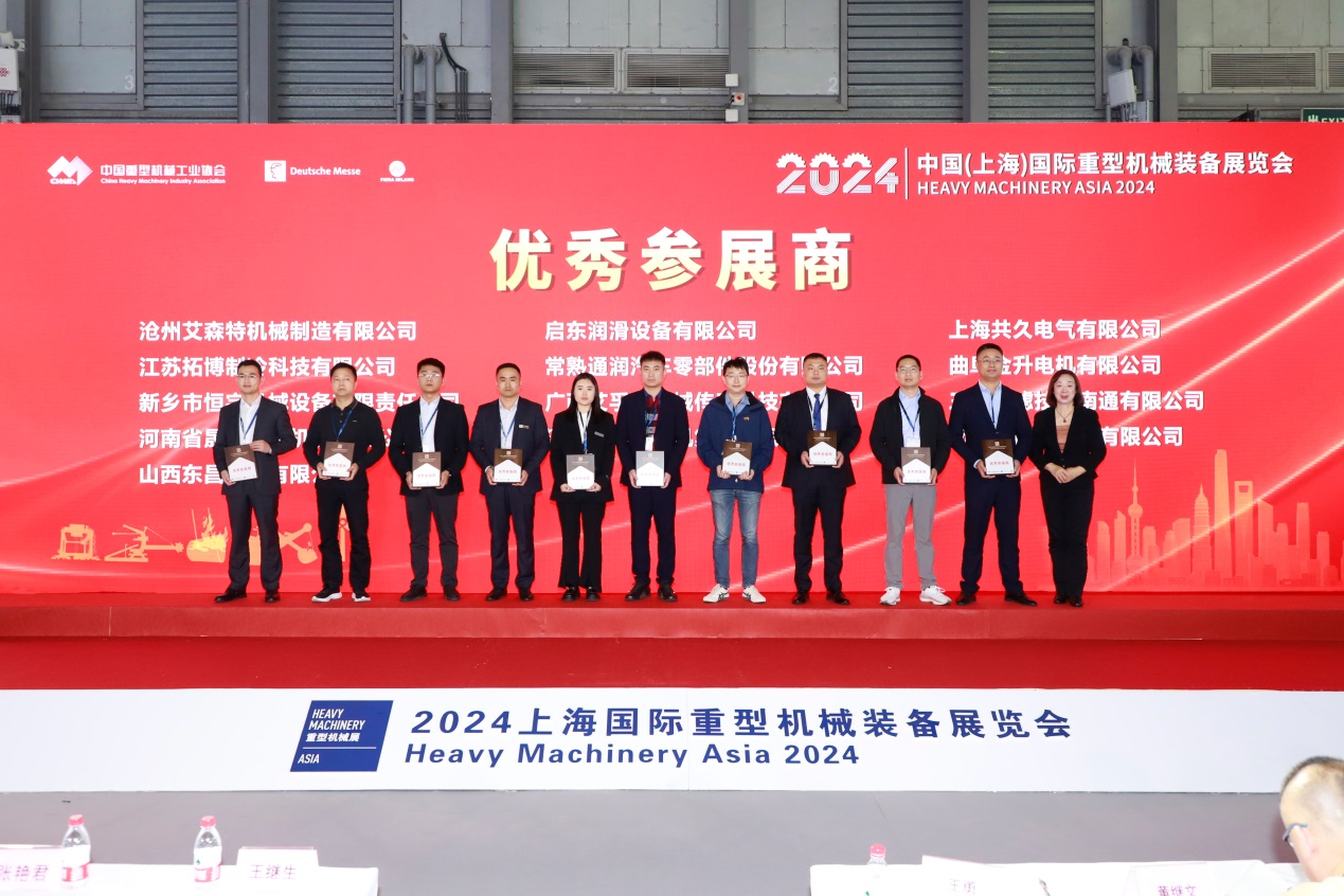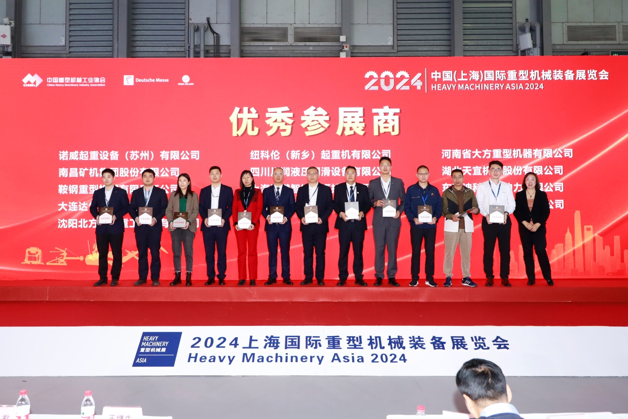 11月7日下午,2024中国(上海)国际重型机械装备展览会优秀展商颁奖仪式在上海新国际博览中心N3馆M1-1论坛区成功举办。中国重型机械工业协会副理事长兼秘书长王继生,副秘书长张艳君、肖立群出席活动。活动由肖立群主持。