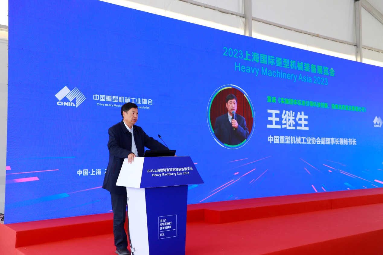 1026日,中国重型机械工业协会团体标准发布仪式在上海新国际博览中心隆重举行。协会常务副理事长景晓波,协会副理事长兼秘书长王继生,协会副理事长、华电重工股份有限公司原党委书记赵胜国,协会副秘书长肖立群等领导出席会议。发布仪式由协会副秘书长肖立群主持。