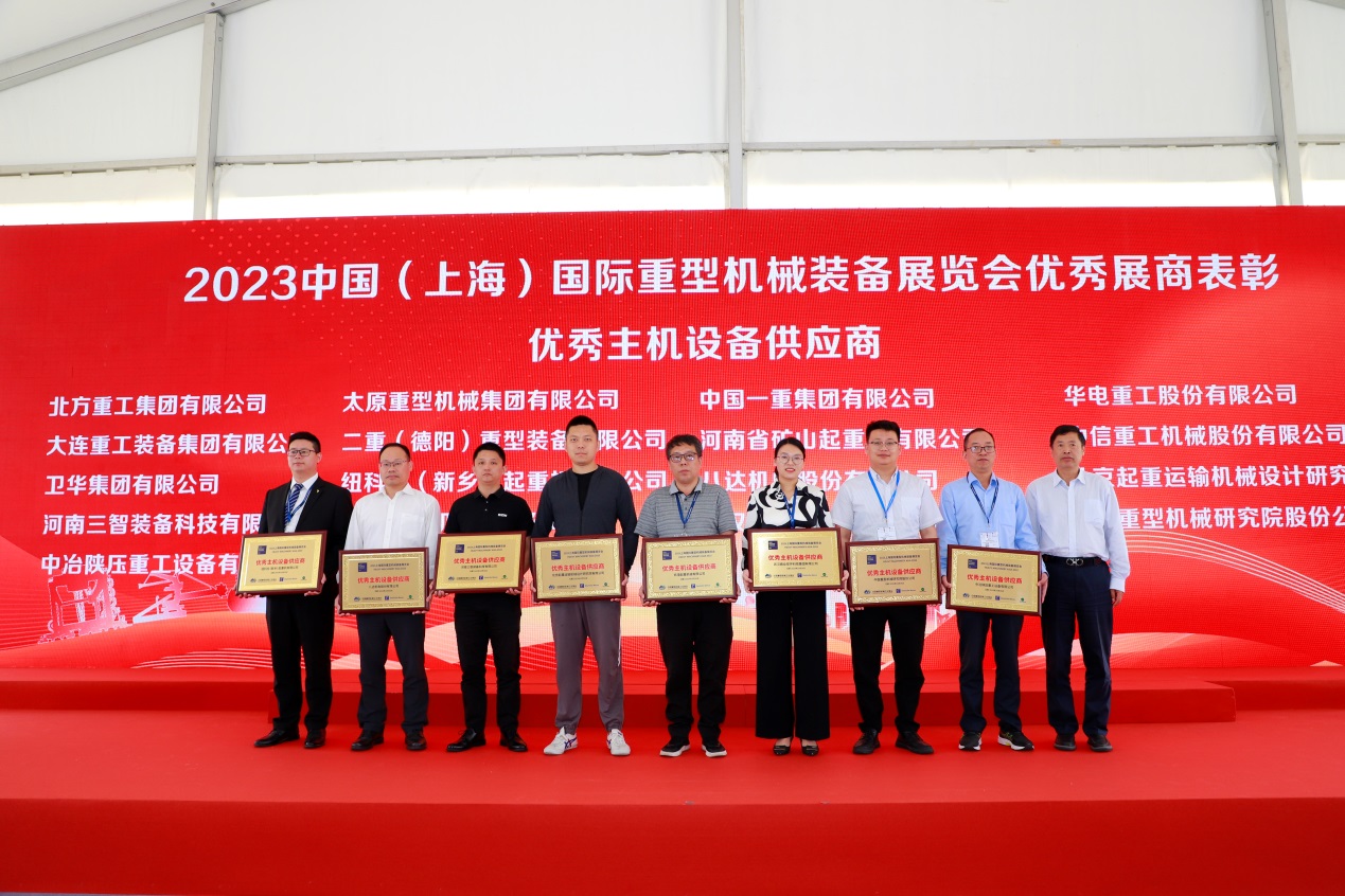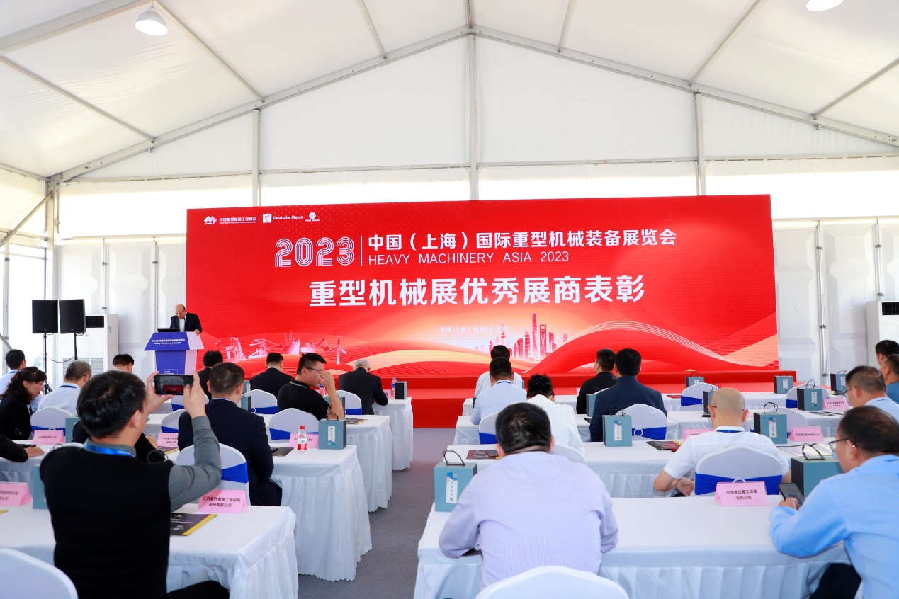 10月26日,2023中国(上海)国际重型机械装备展览会优秀展商表彰仪式在上海新国际博览中心隆重举办。协会常务副理事长景晓波,协会副理事长兼秘书长王继生,协会副理事长、华电重工股份有限公司原党委书记赵胜国,协会副秘书长肖立群等领导出席会议。表彰仪式由协会副秘书长肖立群主持。