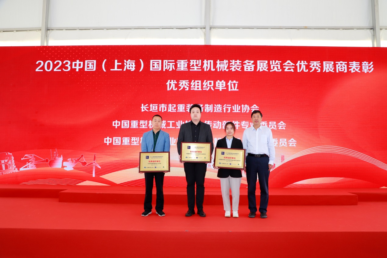 协会副理事长兼秘书长王继生为“2023中国(上海)国际重型机械装备展览会优秀组织单位”颁奖。